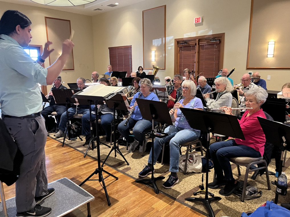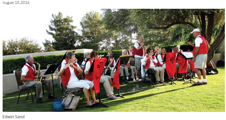 “After Earlene Lewis "bugged me" about starting a band in the summer of 2013, I invited a handful of musicians to join a couple of Earlene's friends in her family room. The band grew by one or two a week until the family room was too small. We then became a garage band at my house and Charles Riddell became the conductor. Our first "gig" was at the ballpark. After Ed Sand became conductor, the band grew rapidly. The band reached new levels of entertainment with the assist of Marie Lopez and her husband, Eddie. It was knocked back with the Covid pandemic and appears to be on a roll at this time.”